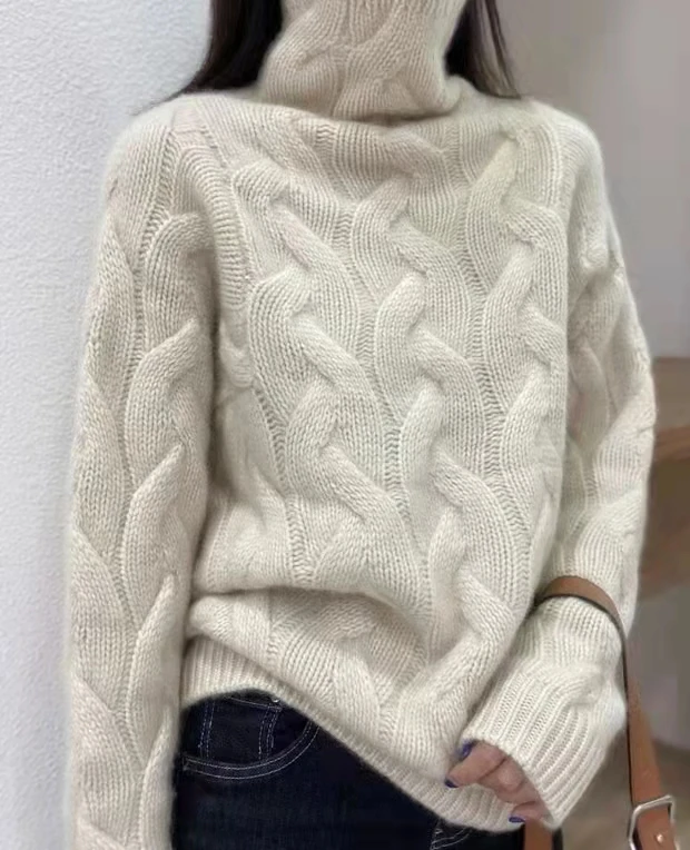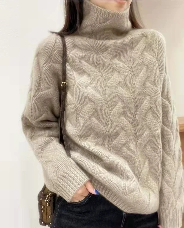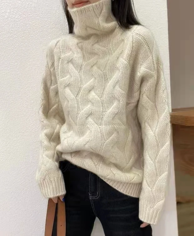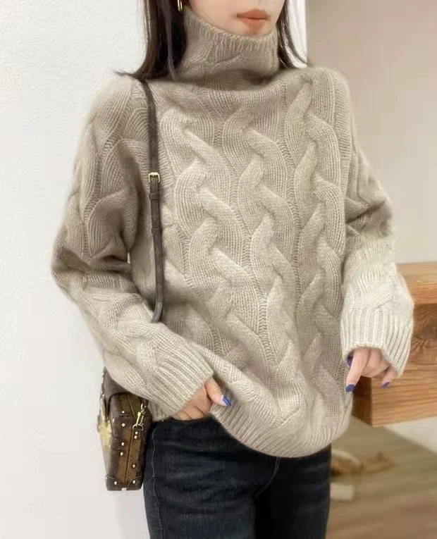 100% pure cashmere sweater women's autumn and winter high-necked loose twisted thick lazy wind bottoming plus size sweater