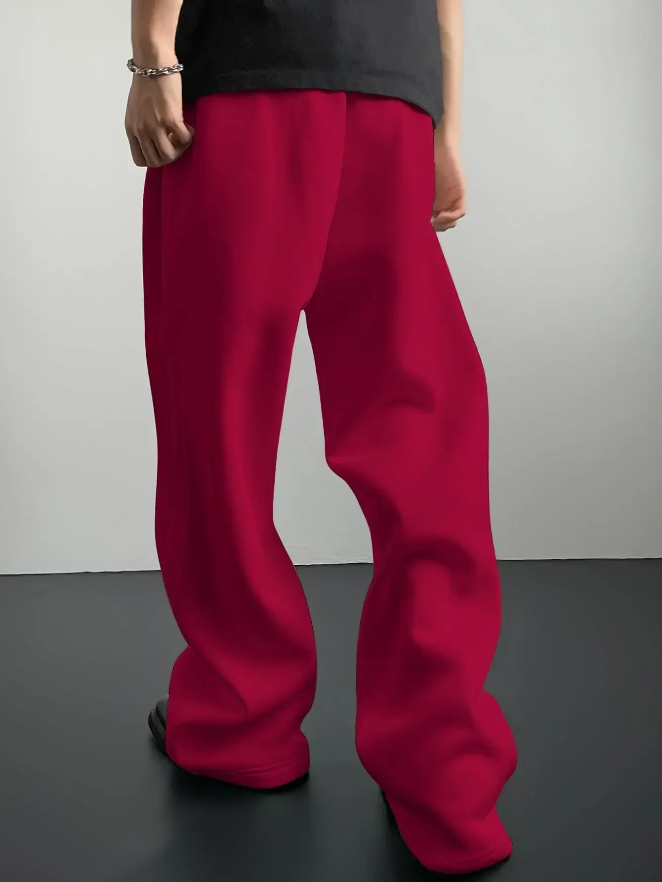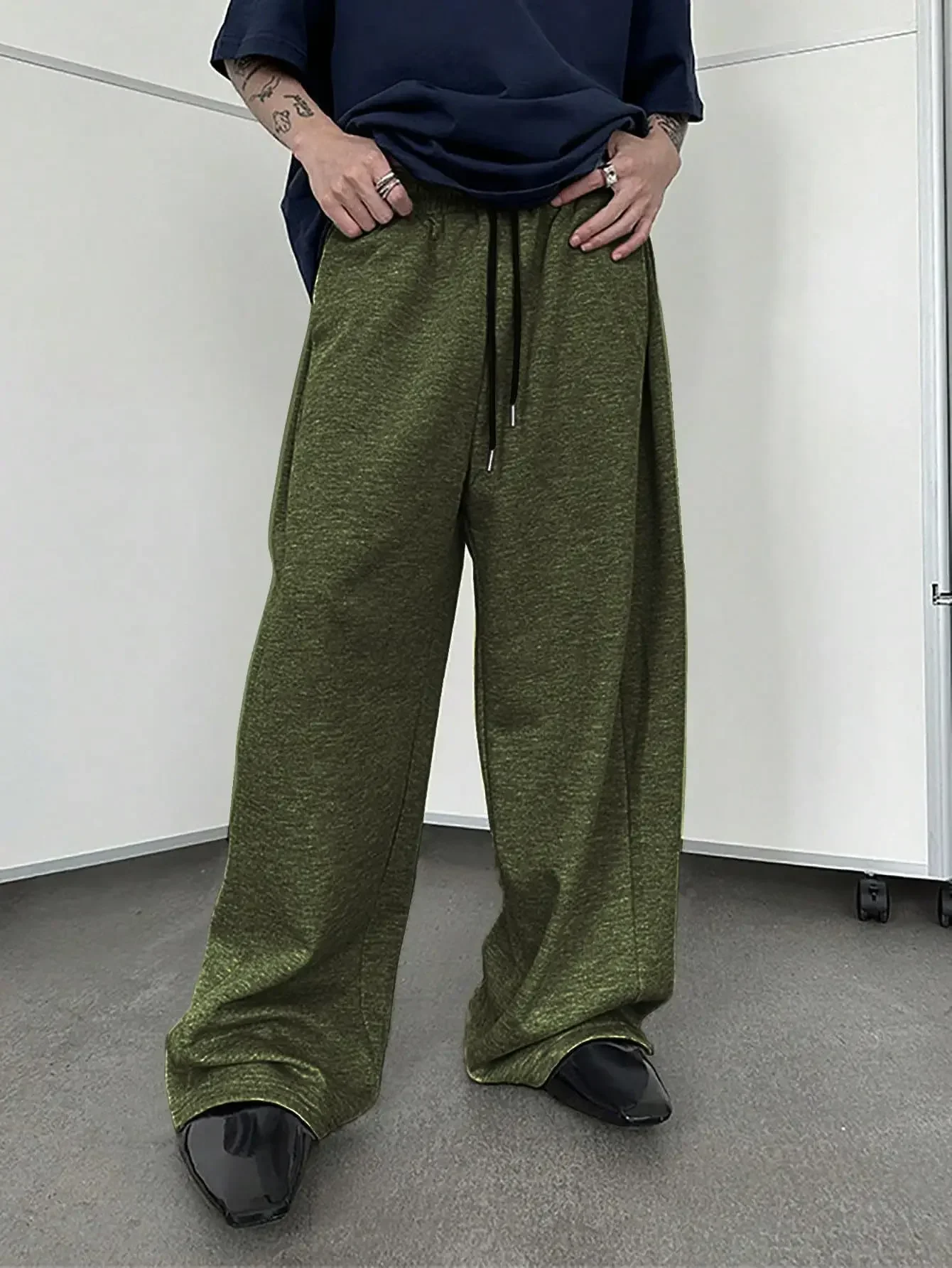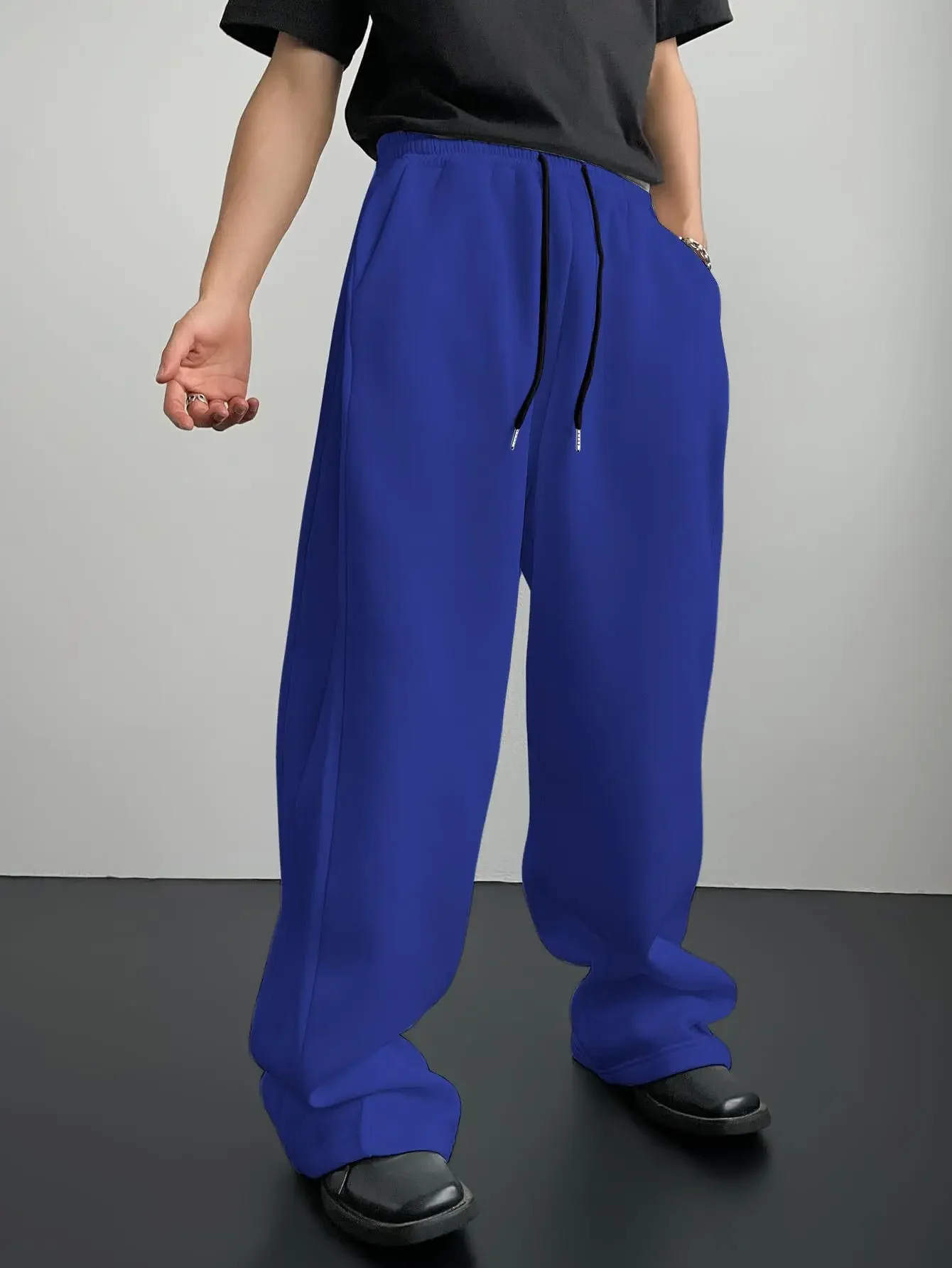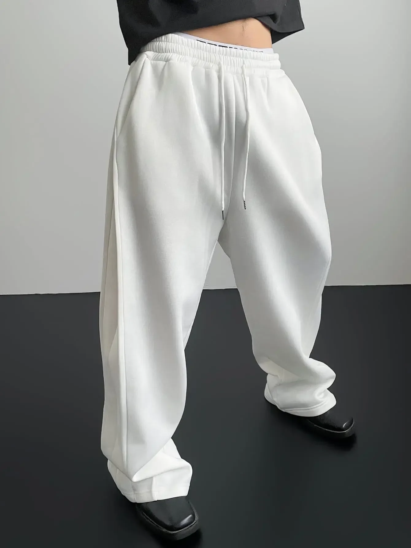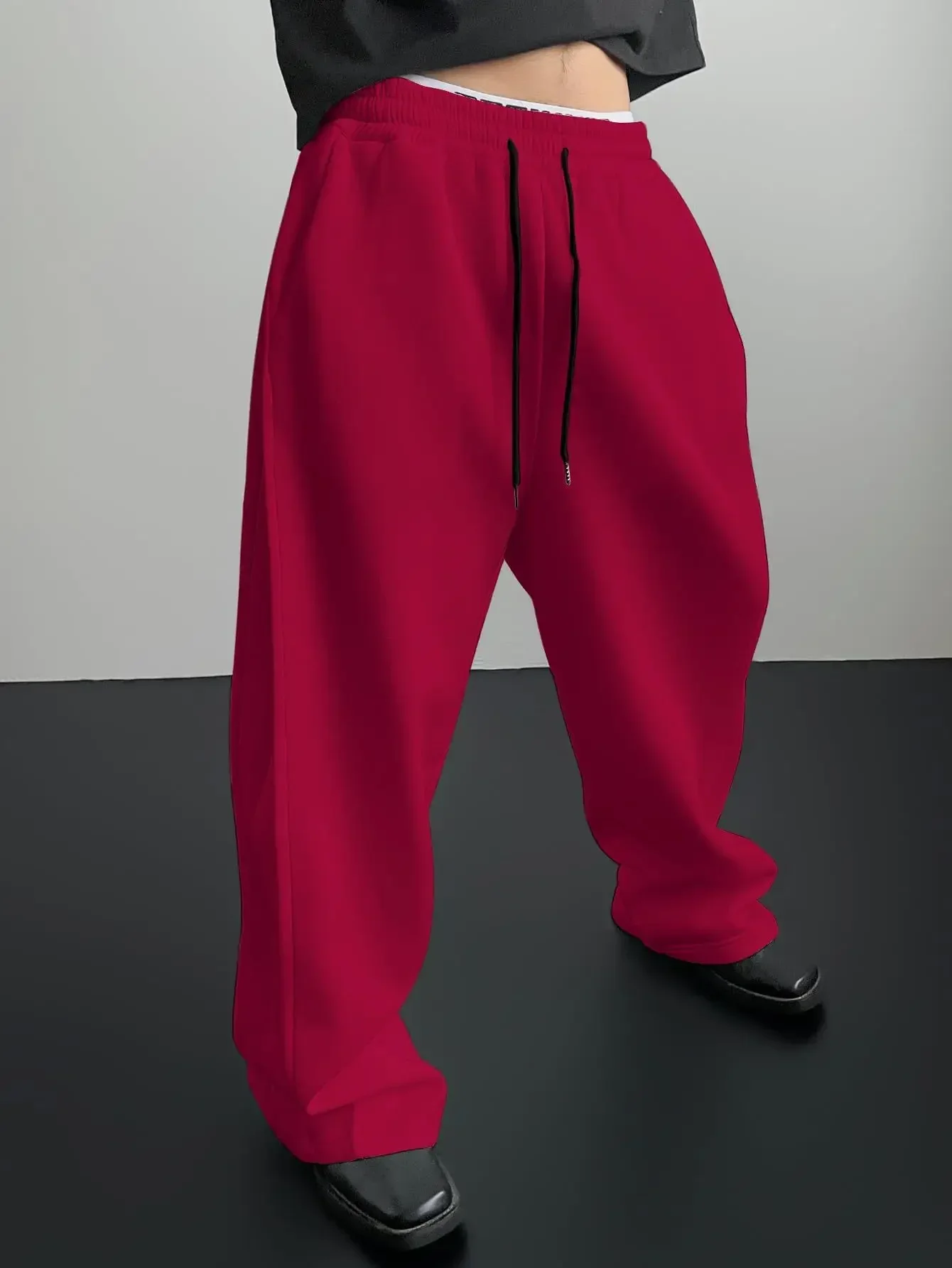 2025 New European and American Men's Sports Pants with Drawstring Waist, Wide Legs, Loose Pants with Pockets