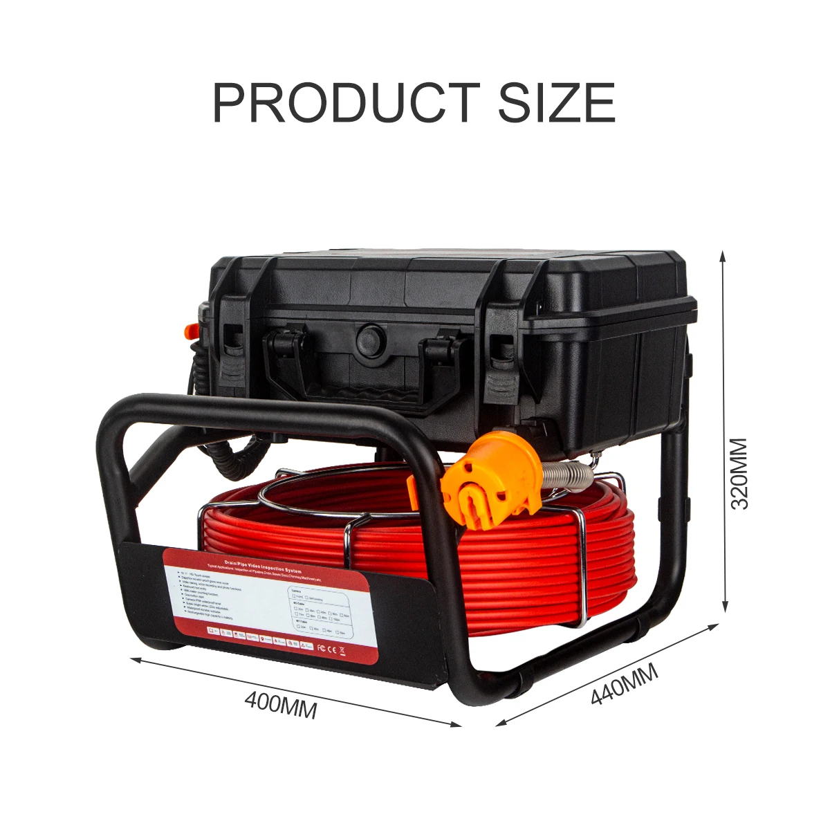 Pipe Wall Sewer Inspection Snake Camera Kit with heavy duty padded aluminum case stores all contents, convenient to carry around. 12V 4500mAh Li-battery included