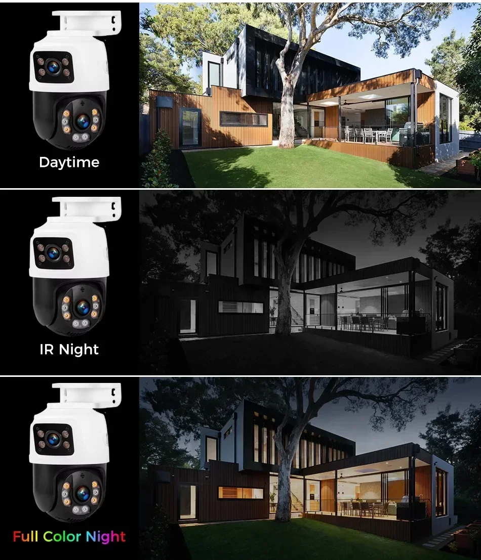 When the white LED light is on, the camera will display colorful vision at night, and there are three night modes for you to choose.