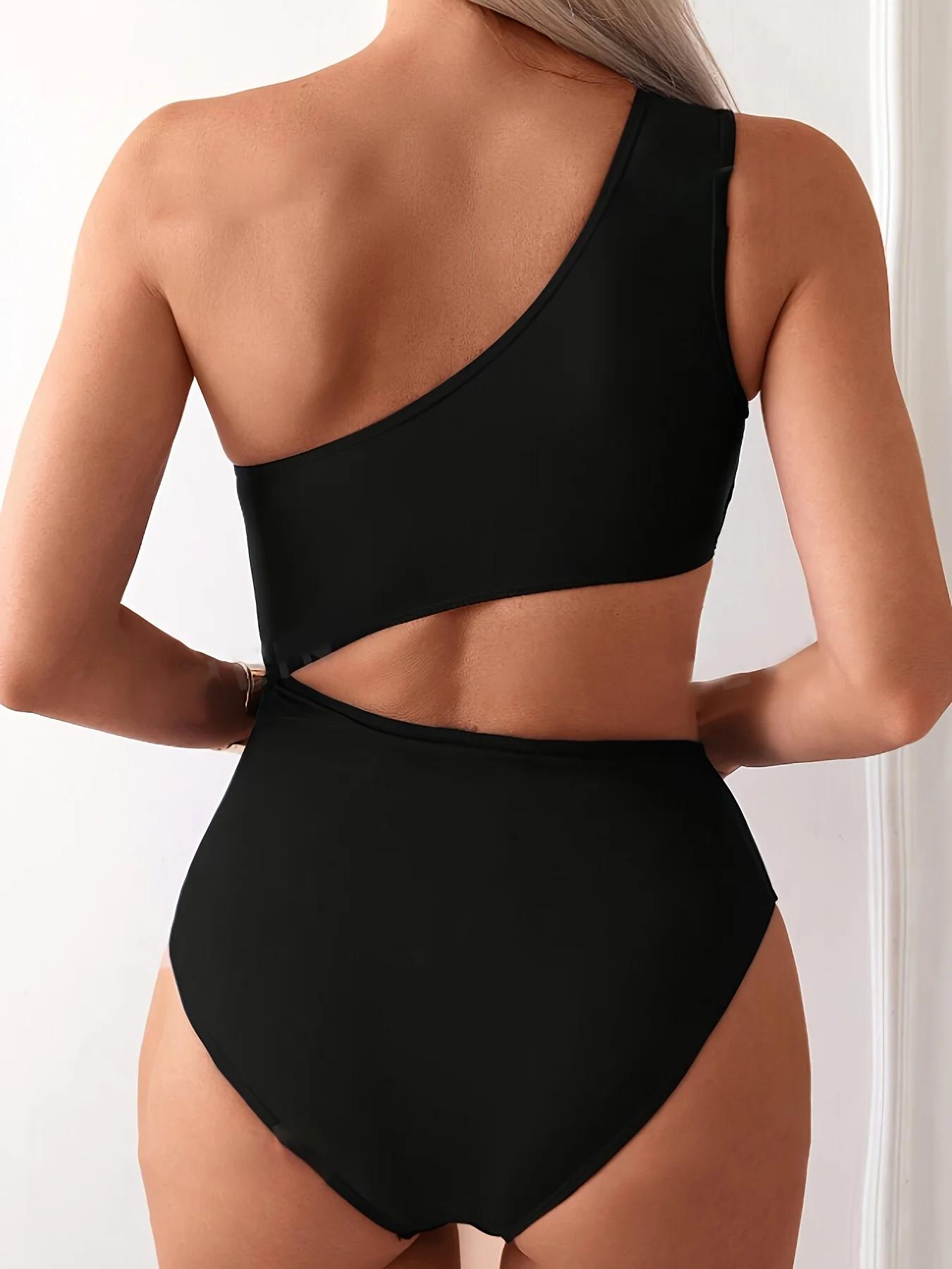 A Set of Sexy Solid Color Hollow Jumpsuit Beach One-Shoulder Women's Swimsuit