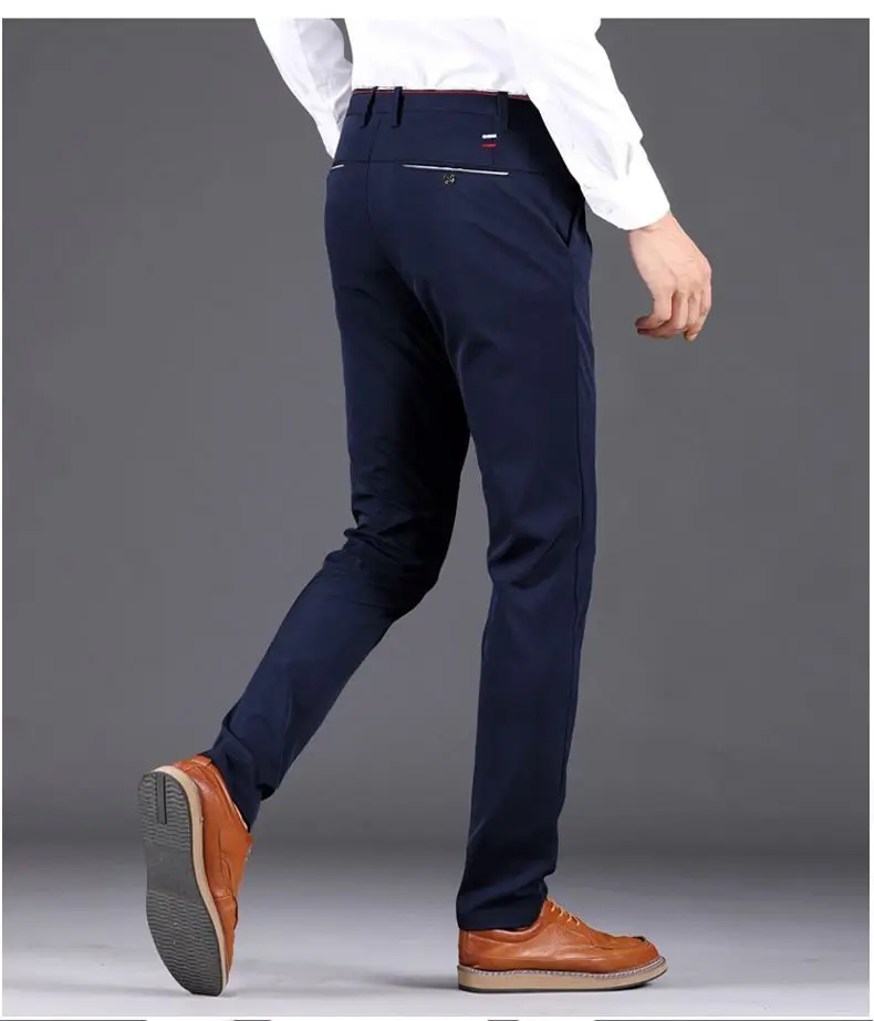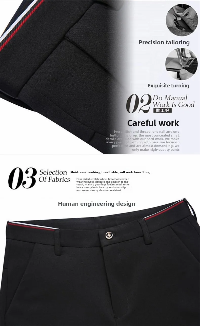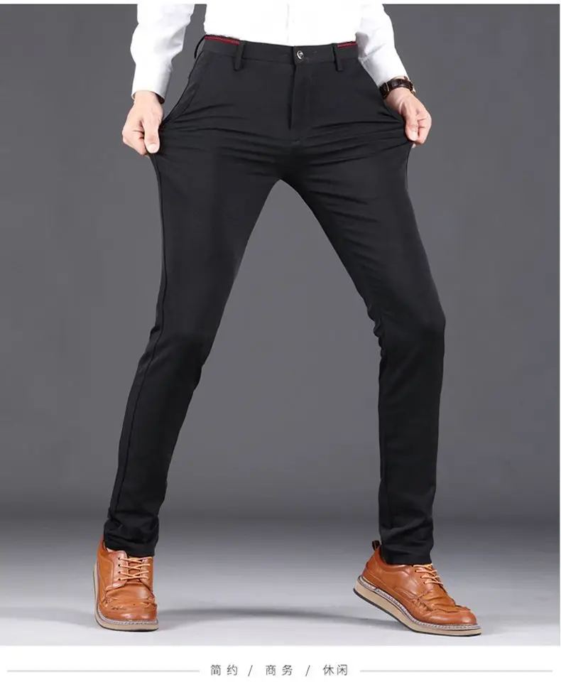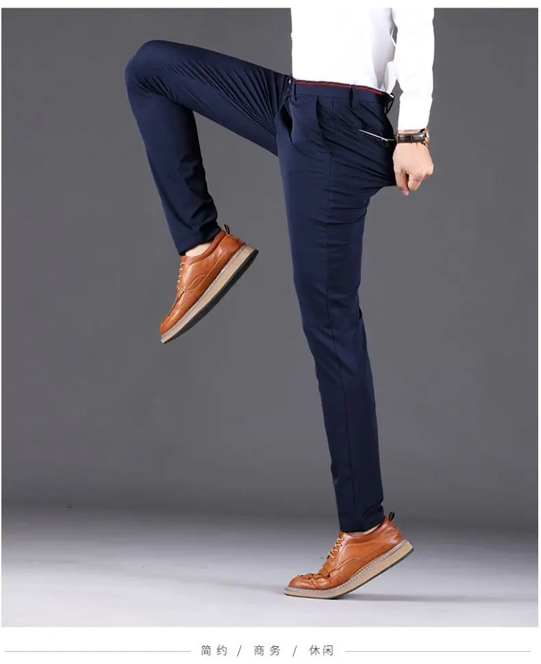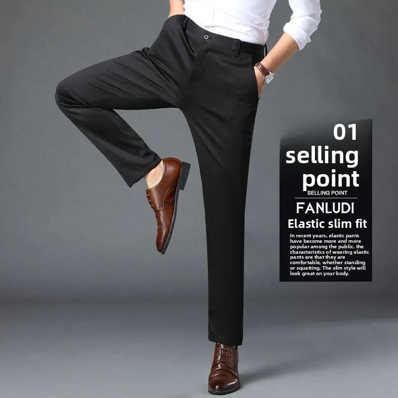 Elastic Waist Dress Pants Men, Professional Office Trousers Wrinkle Resistant, Spring Autumn Slim Fit Thin Business Chino Pants