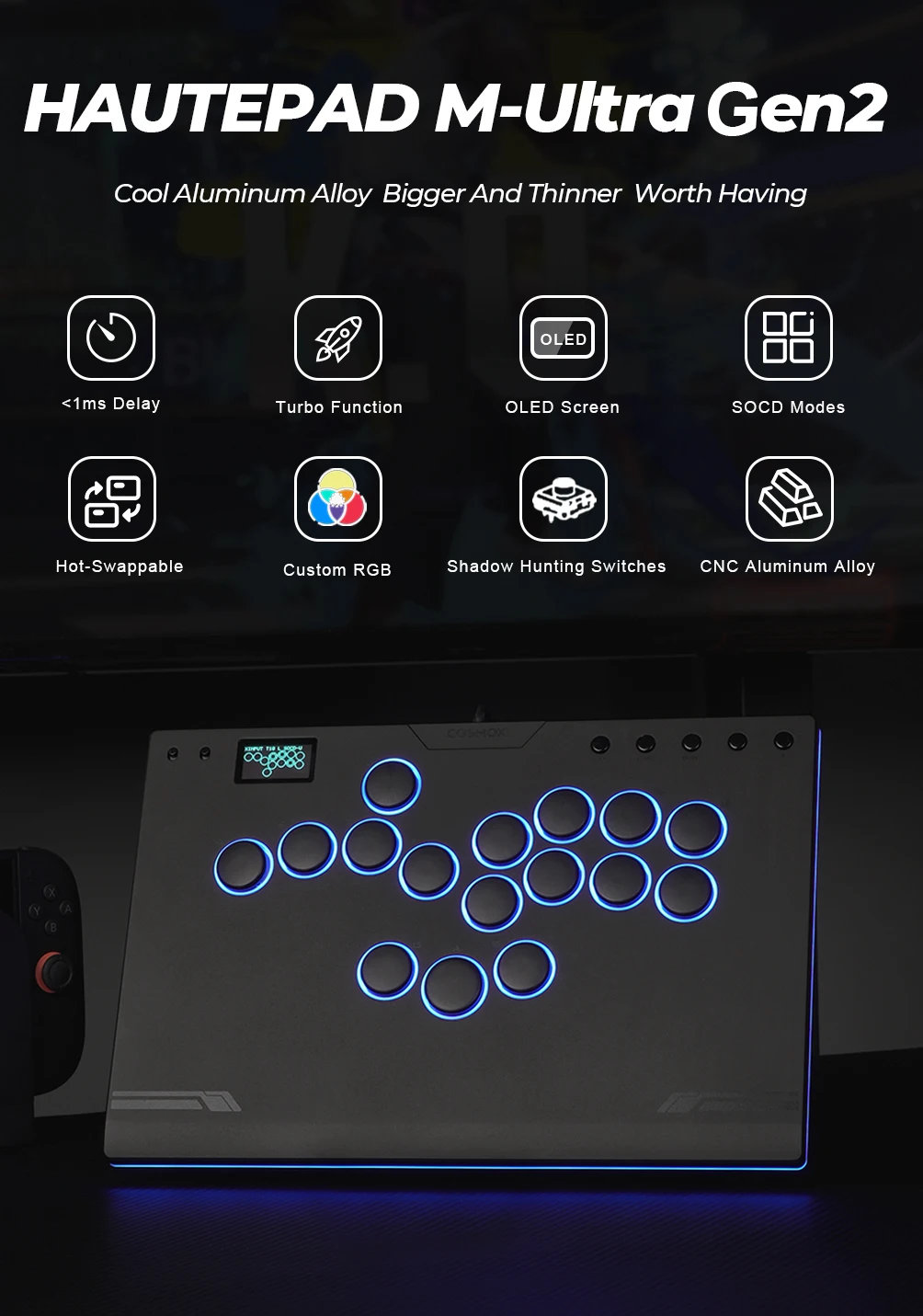 Haute42 M-Ultra Gen 2 Aluminium Alloy Leverless Hitbox Controller For PC/ Ps4 / ps5/Steam Stickless Arcade Stick Controller