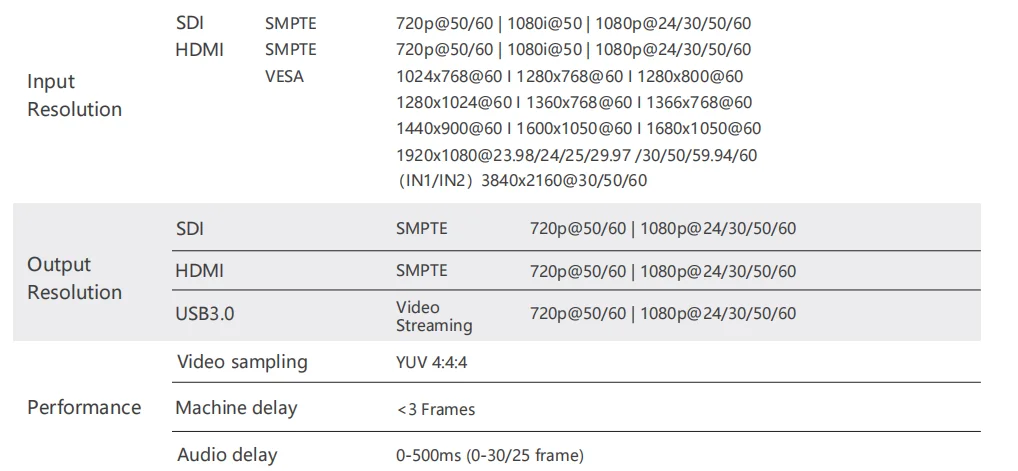 It supports various ultra - high - definition video formats such as 4KP60/50/30/25, 1080P60/50/30/25, 720P60/50.