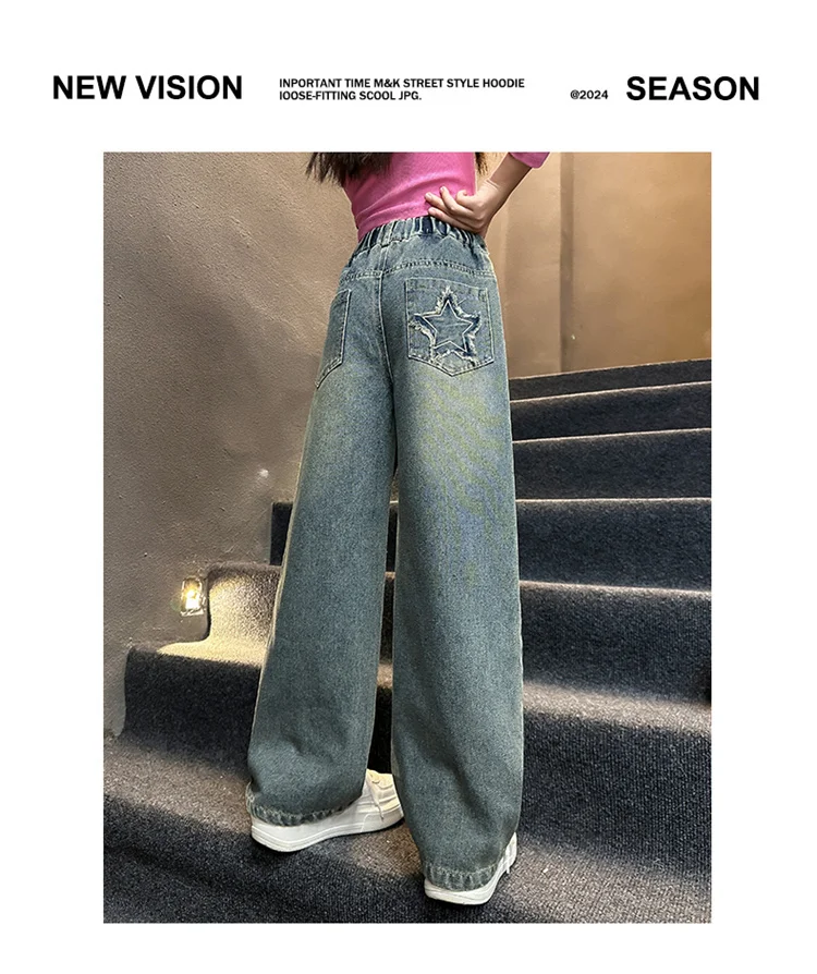 Korean Style Children Insulated Jeans for Girl Baby Warm and Thick Thermal Denim Pants for Girls Autumn Winter Trousers for Kids