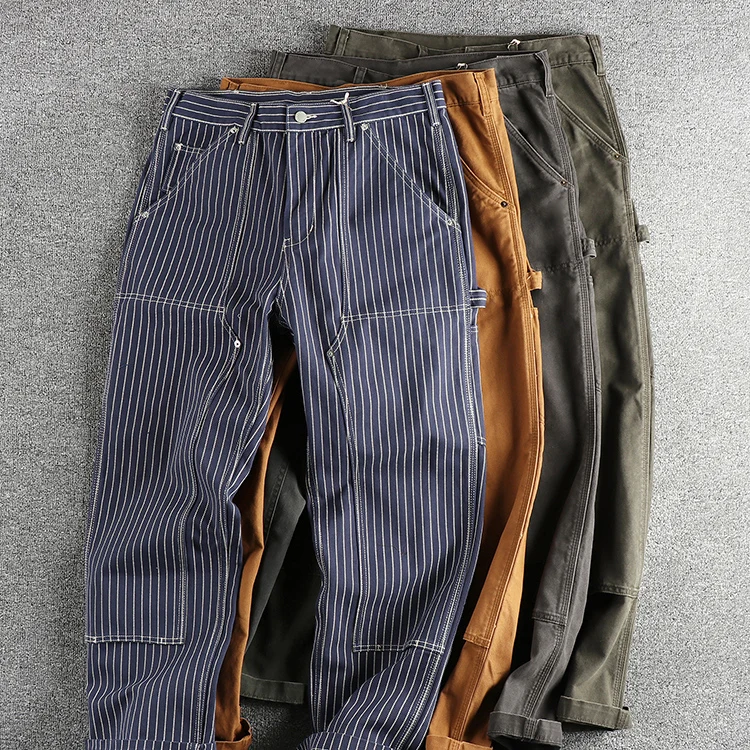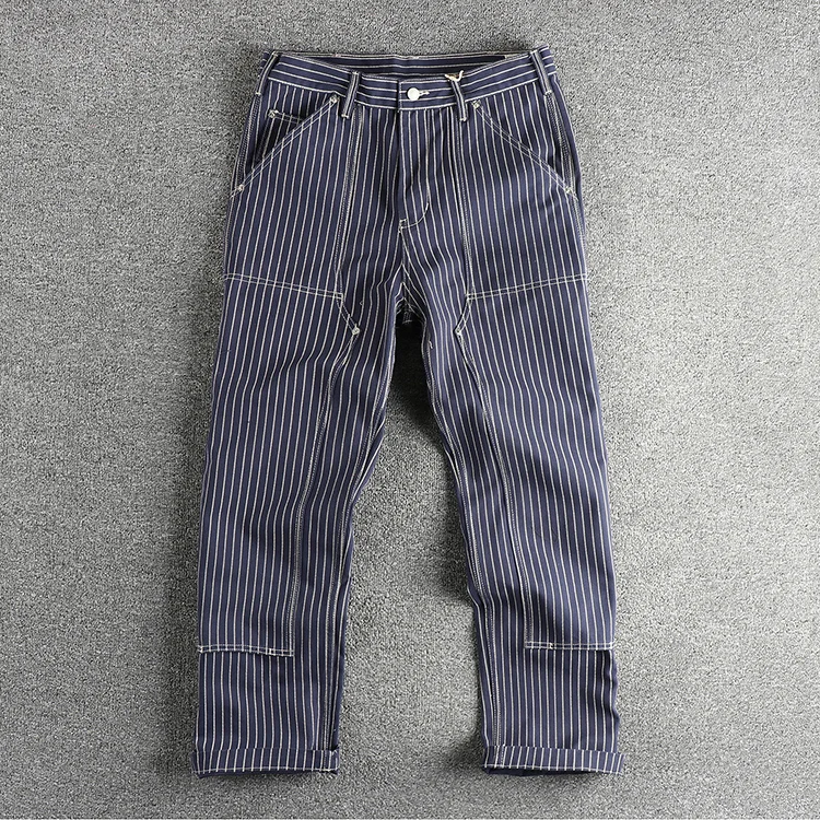 May Khaki heavy chunky overalls dyed blue striped straight trousers men's reproduction trend primary color pants