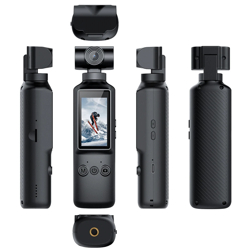 Portable 4K/2K video camera, rotatable lens charging action camera, travel and party recorder, outdoor sports Vlog camera