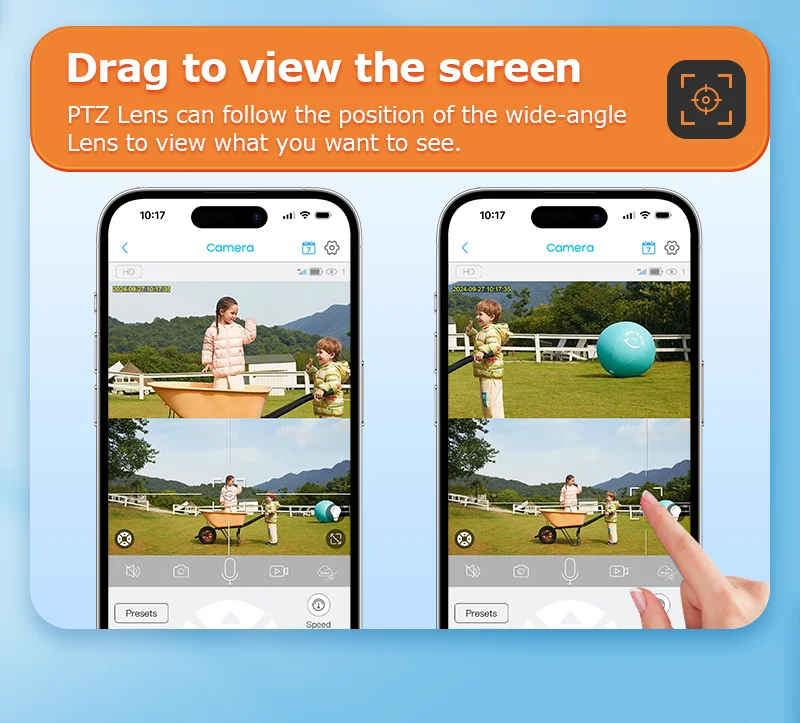 【PIR Motion Detection & Real-time Alerts】Built in high sensitivity speakers and advanced PIR detection sensors, once human movement is detected, the wireless home security camera will immediately push alarm information to your phone and trigger a loud siren, spotlight, or sound alarm to scare away unwanted visitors.(Not supports automatic tracking of moving objects)