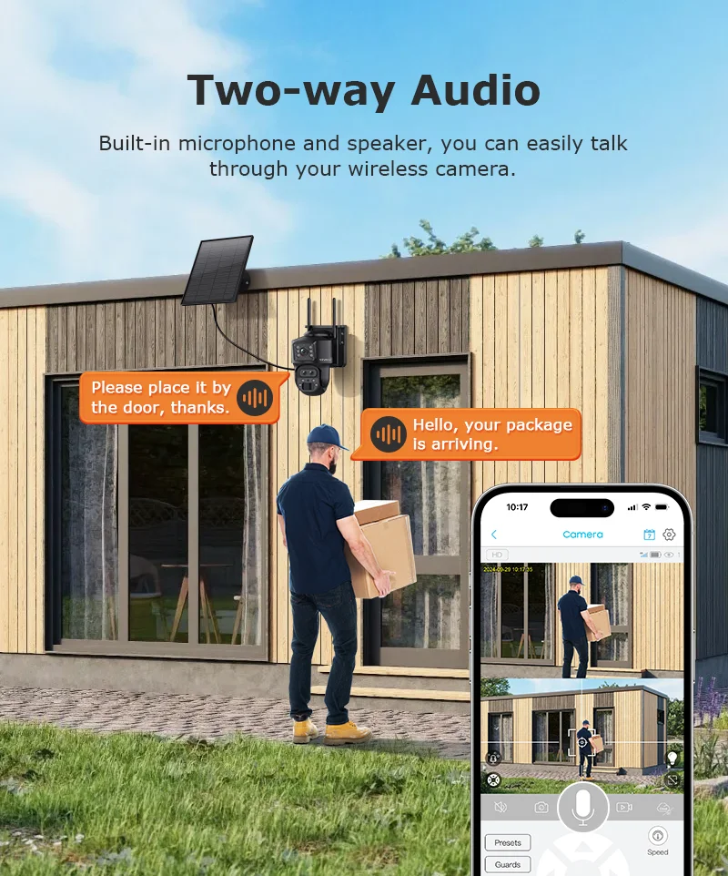 Built-in microphone and speaker, you can easily talk through your wireless camera.