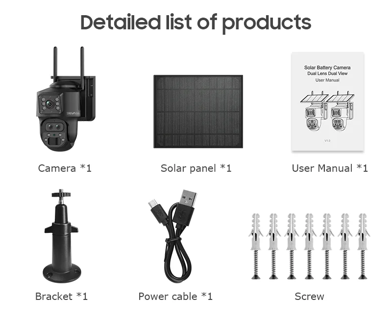 【15X Zoom & Dual-lens 360° Viewing Angle】Solar camera with 15X digital zoom, 4x optical zoom+3x digital hybrid zoom, allows you to clearly zoom in on distant objects(license plate number can see).supports 355 ° horizontal and 90 ° vertical rotation, can be easily controlled through an application to capture a wider range.